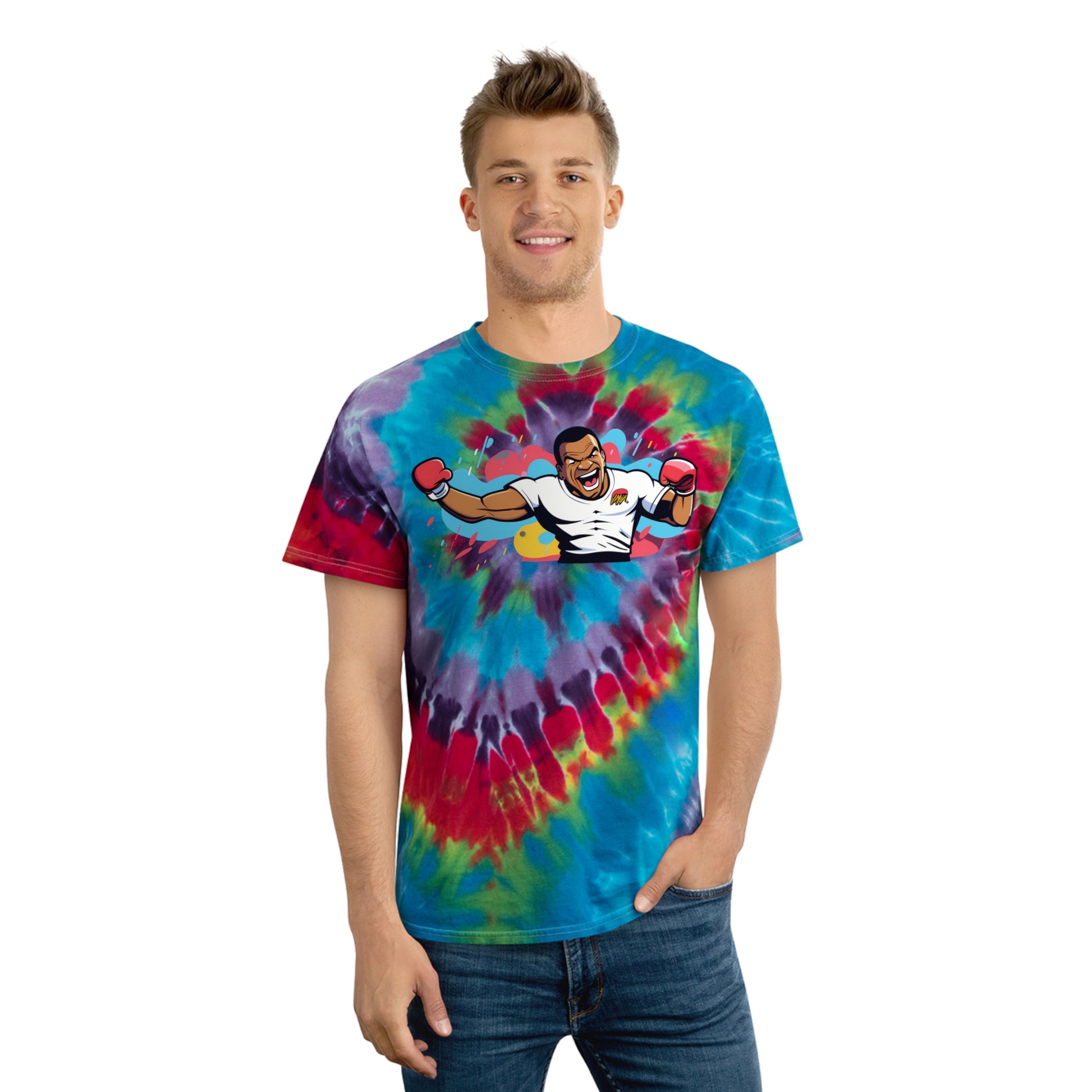 Step into the ring of style with our Tie-Dye Logo T-Shirt, inspired by the boldness of Mike Tyson. Each shirt boasts a dynamic tie-dye canvas, reminiscent of Tyson's fierce energy in the ring—distinctive and incomparable. The precision-printed logo adds a powerful statement to this vibrant design. Crafted for comfort and individuality, it's a fusion of Tyson's fearless spirit and the captivating allure of tie-dye. Embrace your uniqueness with our Tie-Dye Logo T-Shirt—a colorful homage to Tyson's boldness that makes a knockout fashion statement.