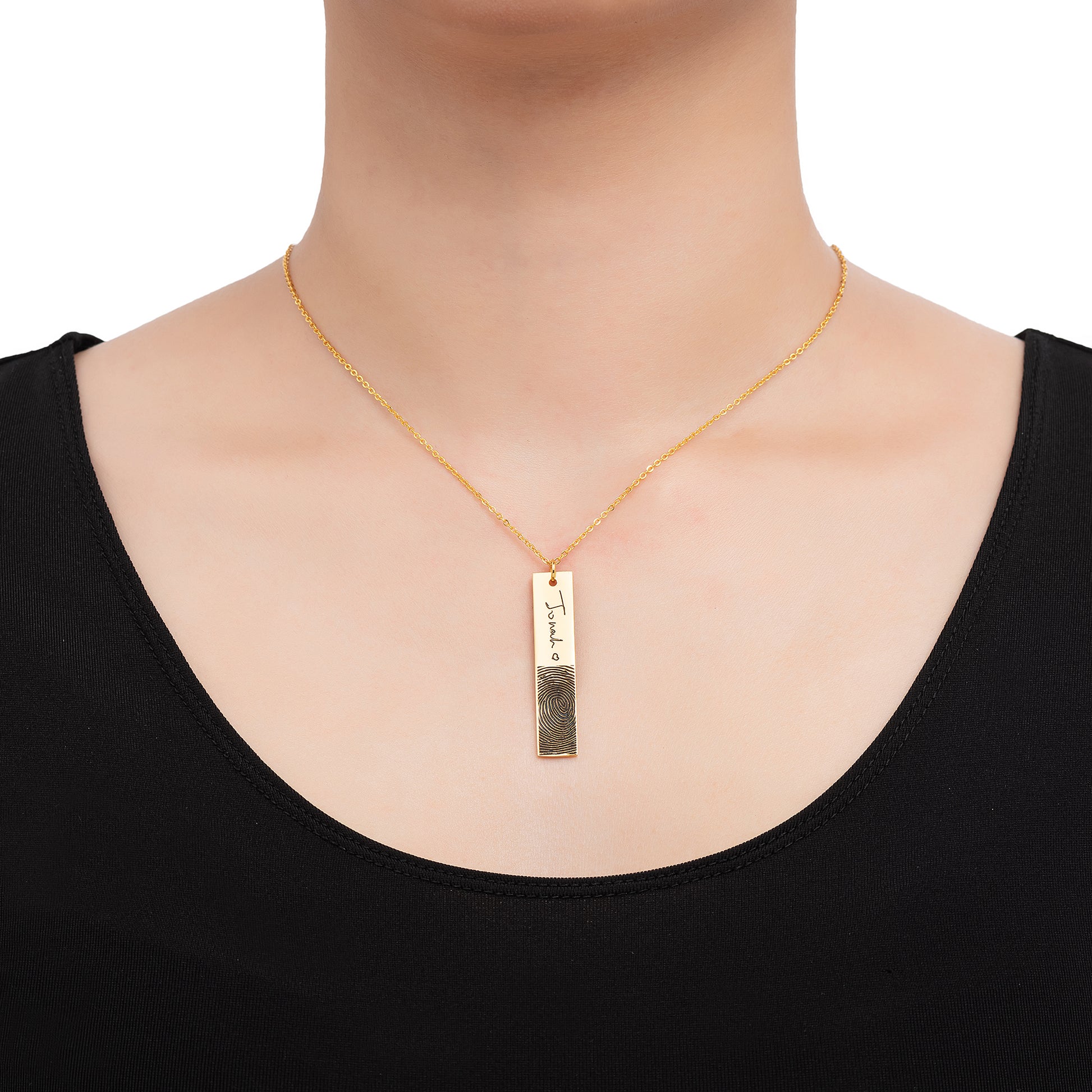 Rectangular Simple Handwritten Signature Engraved Necklace
